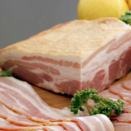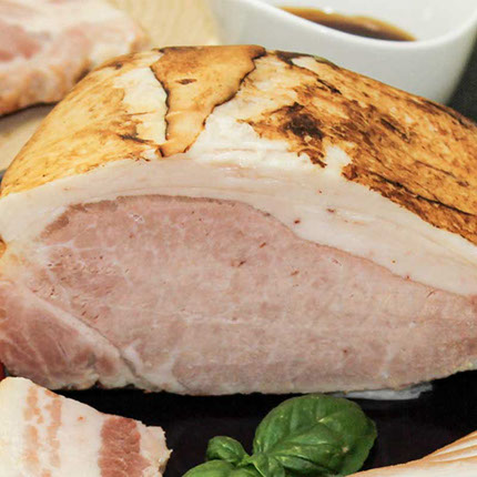 国産生豚バラ肉に塩を擦り込み低温冷蔵庫で2週間じっくり熟成させて焼き上げました。好きな厚さに切って、そのまま食べてみてください。切り立てならではの美味しさが味わえます。また、お好みのサイズでお料理にお使いいただけます。